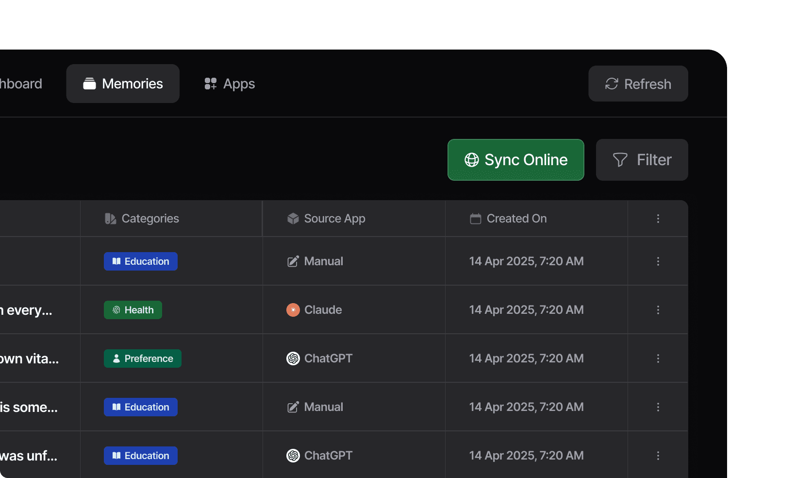 Memories are enriched with metadata like categories making it easy to search when you need them.